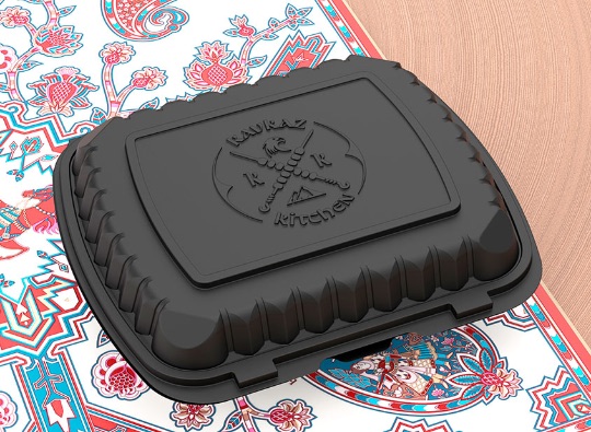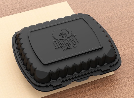 К нам обратилась сеть по доставке готовой еды “Кавказ Китчен” с задачей создания брендированных одноразовых ланч-боксов из полипропилена. Основной запрос — нанесение логотипа компании на верхнюю часть упаковки для усиления узнаваемости бренда.