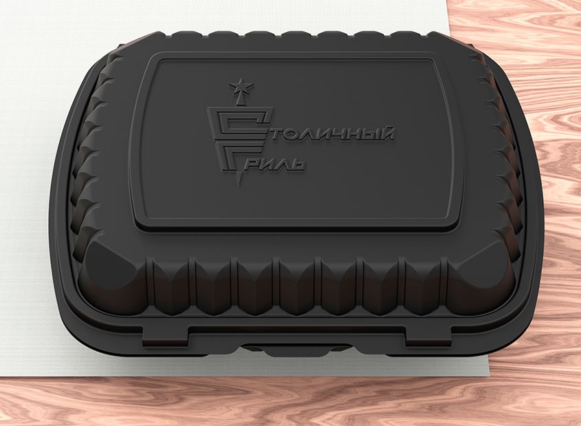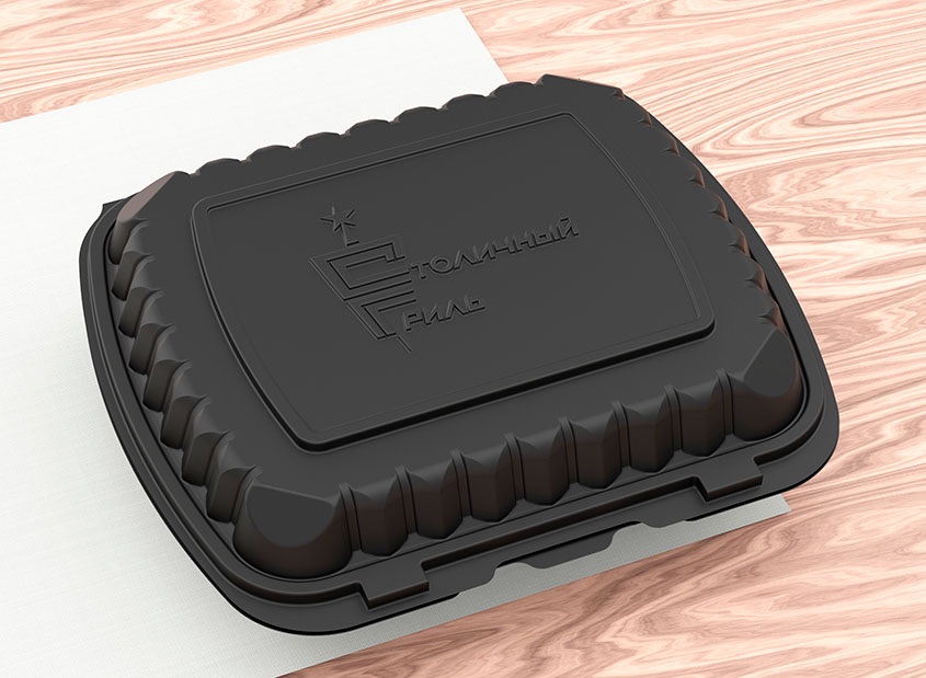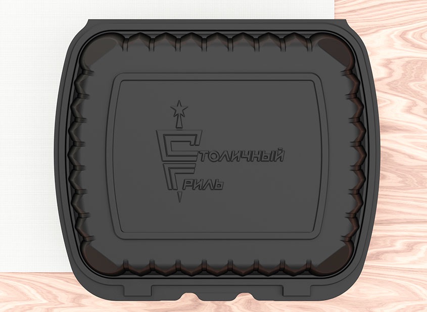К нам обратился владелец небольшого производства “Столичный гриль” с задачей создания брендированных одноразовых ланч-боксов. Основной запрос — нанесение логотипа компании на верхнюю часть упаковки для усиления узнаваемости бренда и привлечения новых клиентов.