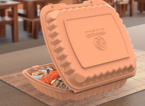 Готовый кейс: нанесение логотипа на одноразовый ланч-бокс для сети шашлычных